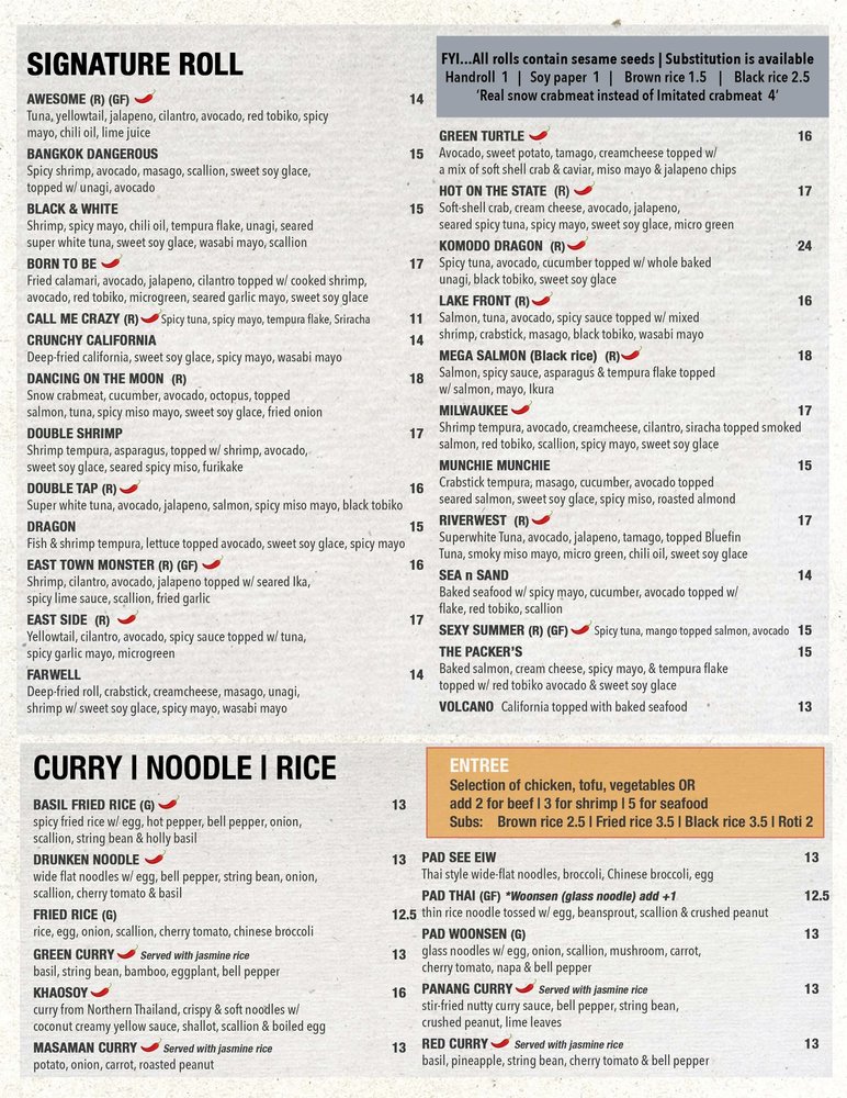 Welcome to Rice n Roll Bistro | Sushi Bar & Thai Cuisine, where culinary artistry meets Southeast Asian flavors. Nestled at 1952 N Farwell Ave, Milwaukee, this vibrant bistro offers a delightful fusion of Thai and sushi dishes. Start your culinary journey with tantalizing salad appetizers, such as the Flaming Tuna Crispy Salad or Kani Dynamite, each bursting with fresh ingredients and bold flavors.